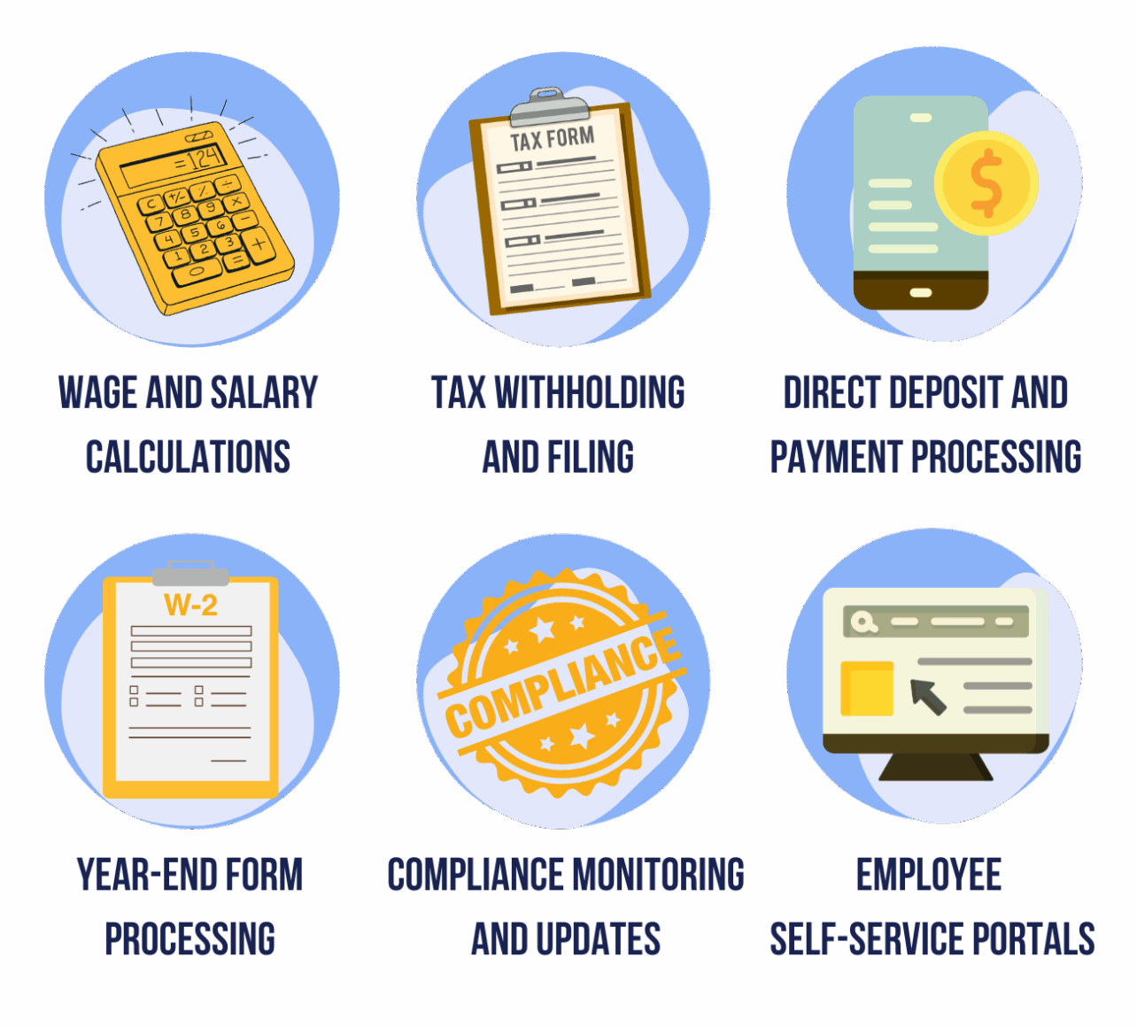 - Accuracy: Payroll processing for small businesses includes implementing proper systems to ensure all wage and benefit calculations are correct and timely.